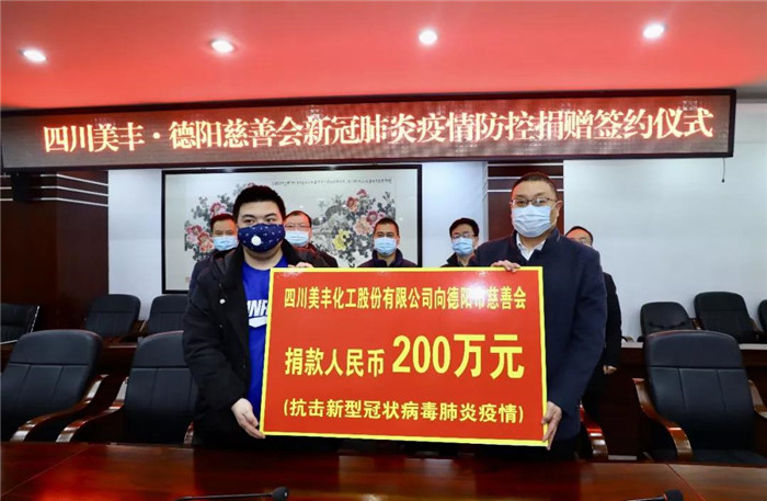 疫情就是命令,防控就是責(zé)任。作為中國(guó)石化控股的上市公司,四川美豐在全力做好企業(yè)自身疫情防控和生產(chǎn)經(jīng)營(yíng)工作的同時(shí),捐款400萬(wàn)元支援新冠肺炎疫情防控,為抗疫物資運(yùn)輸車(chē)輛免費(fèi)加注車(chē)用尿素,積極履行央企控股上市公司社會(huì)責(zé)任,以實(shí)際行動(dòng)回報(bào)社會(huì),踐行“產(chǎn)業(yè)報(bào)國(guó)、服務(wù)社會(huì)、造福人民”的使命擔(dān)當(dāng)。